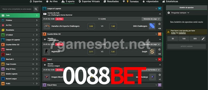 O 0088bet oferece uma grande seleção de opções de apostas em e-sports com probabilidades competitivas